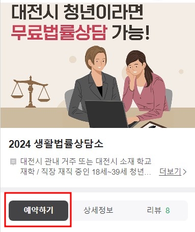 대전시에서는 청년들이 겪고 있는 다양한 법률적인 문제들의 해결을 돕기 위해 대전변호사협회와 협약하여 대전 청년들을 대상으로 무료법률상담 서비스를 제공하고 있습니다.