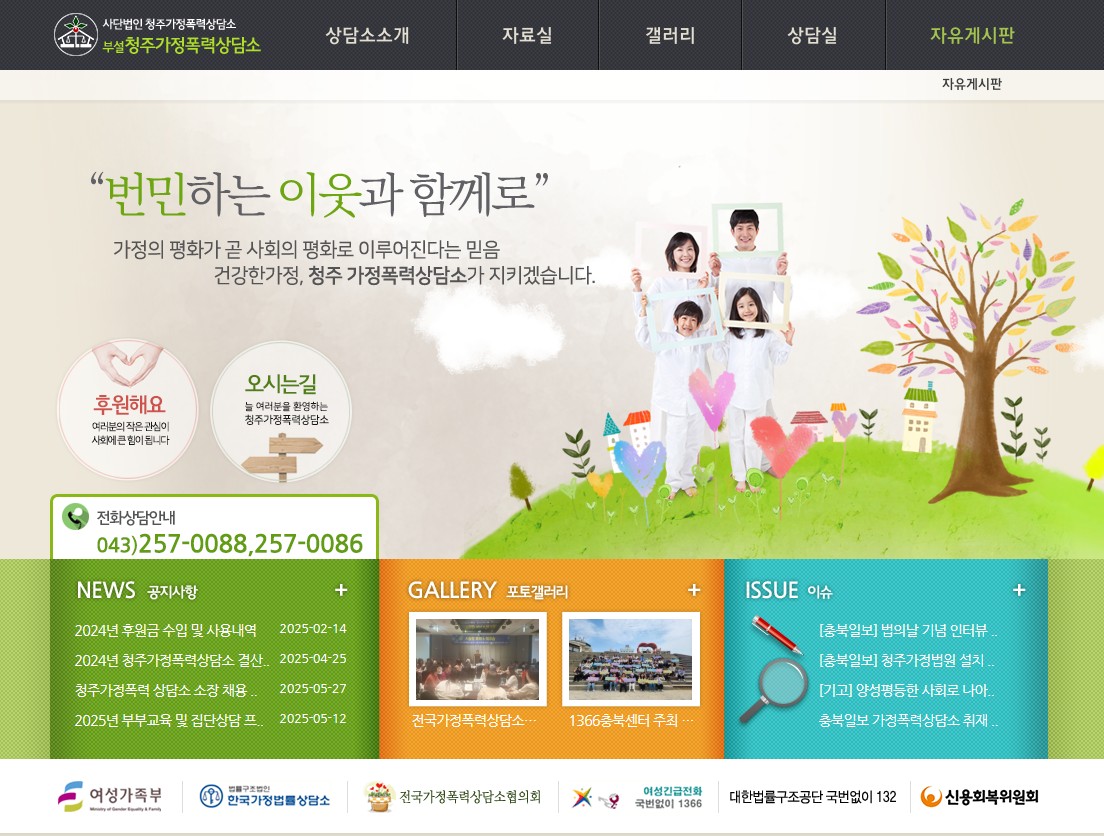 청주 이혼상담 무료로 받을 수 있는 상담센터 가운데 한 곳입니다. 법률상담은 물론 심리적 지원도 함꼐 받을 수 있으니 참고하세요!