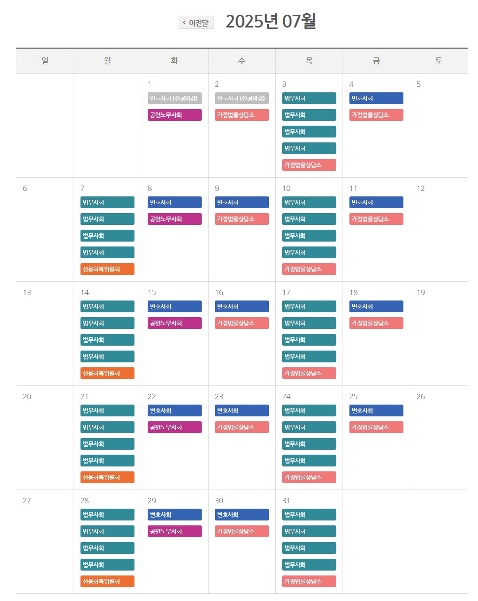 - 상담내용: 가사, 민사, 형사 등 법률상담