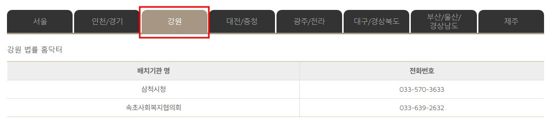 대한법률구조공단 원주출장소에서도 무료상담을 받을 수 있습니다.