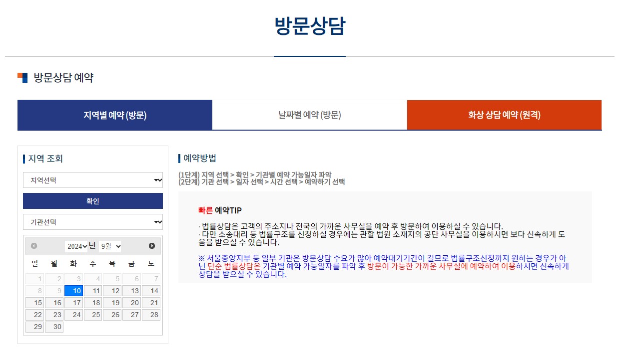 - 상담방법 : 변호사 1명이 상담 실시 (예약필수)