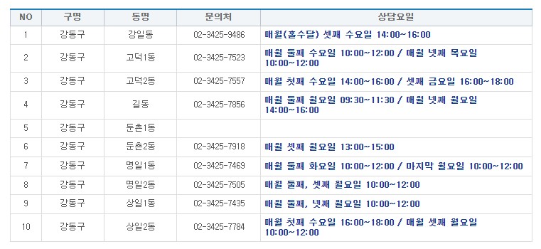 - 상담대상: 강동구민, 관내 기관·기업 종사자