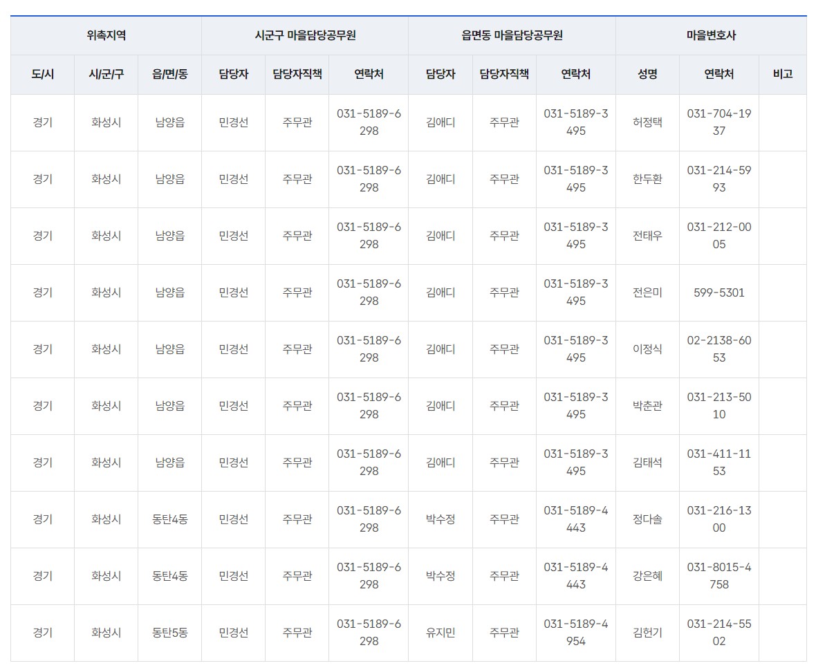 - 읍면동사무소, 지방변호사회, 법무부를 통해 화성시 마을변호사 연락처를 확인하세요.