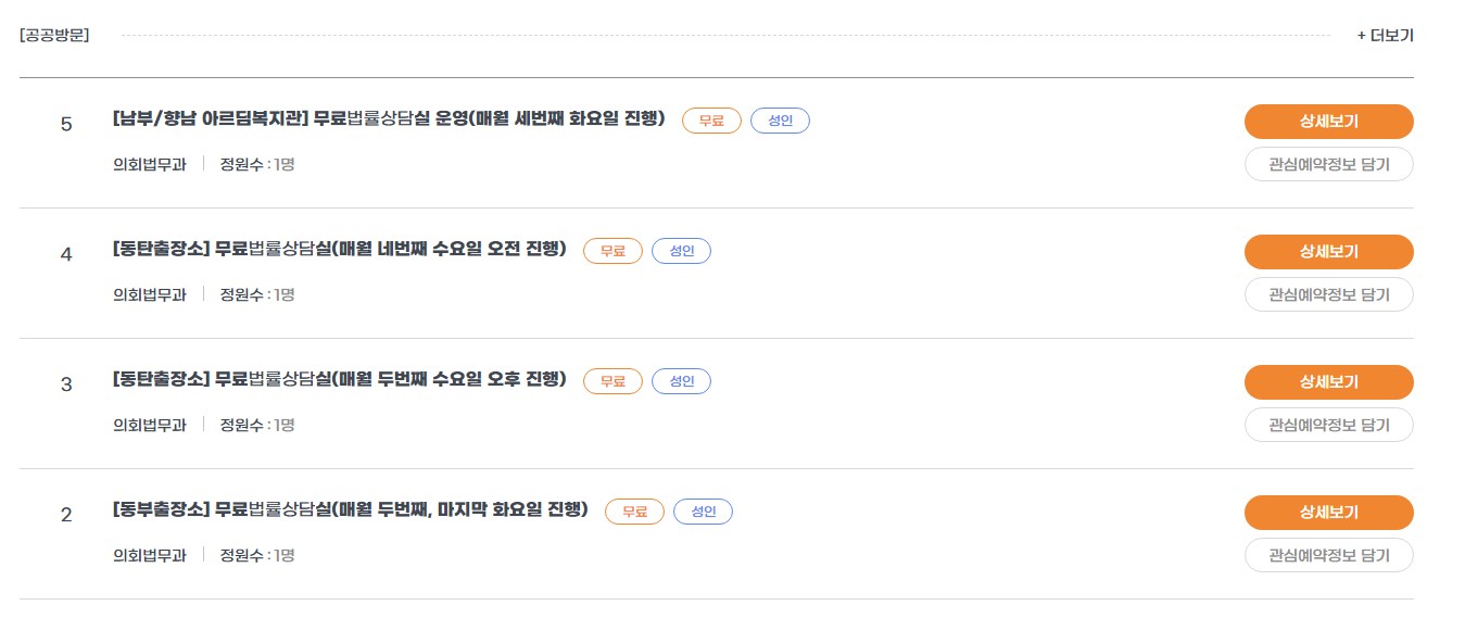 무료법률상담의 경우, 사전예약은 필수입니다. 특히 예약이 빠르게 마감되기 때문에 홈페이지 등을 통해서 사전예약을 서둘러서 진행하시는 것을 추천드립니다.