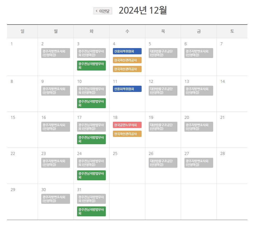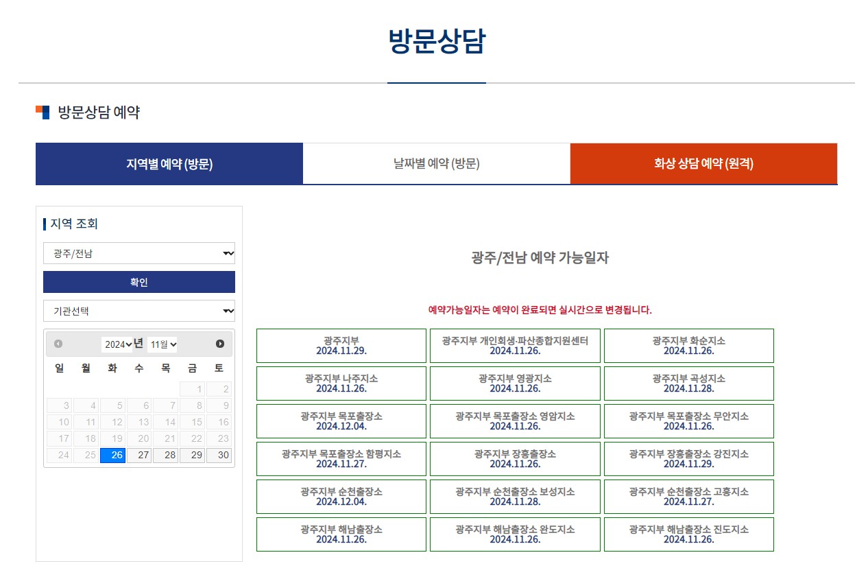 - 상담장소: 광주지방법원 1층 사법접근센터