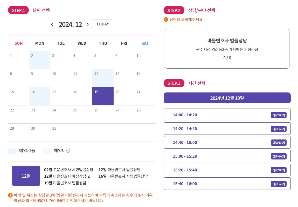 • 상담대상: 경기도 광주 읍면동 행정복지센터