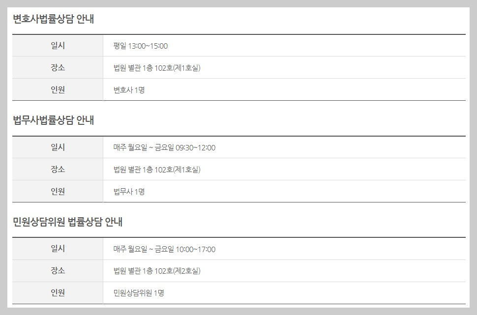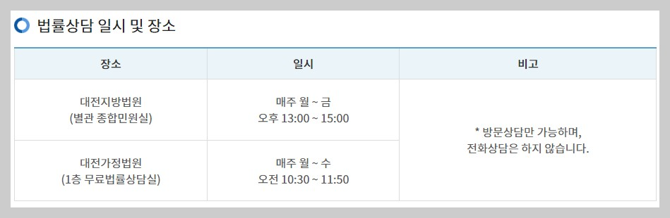 - 상담장소: 대전가정법원 1층 무료법률상담실