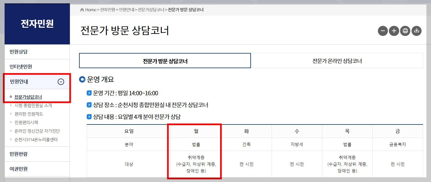 - 상담장소: 전라남도 순천시청 도시재생과동 4층 법률홈닥터실