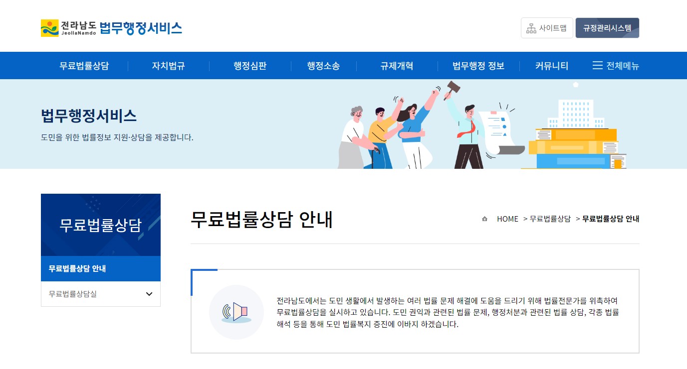 - 신청방법: 전라남도 법무행정서비스에 무료법률상담신청하기