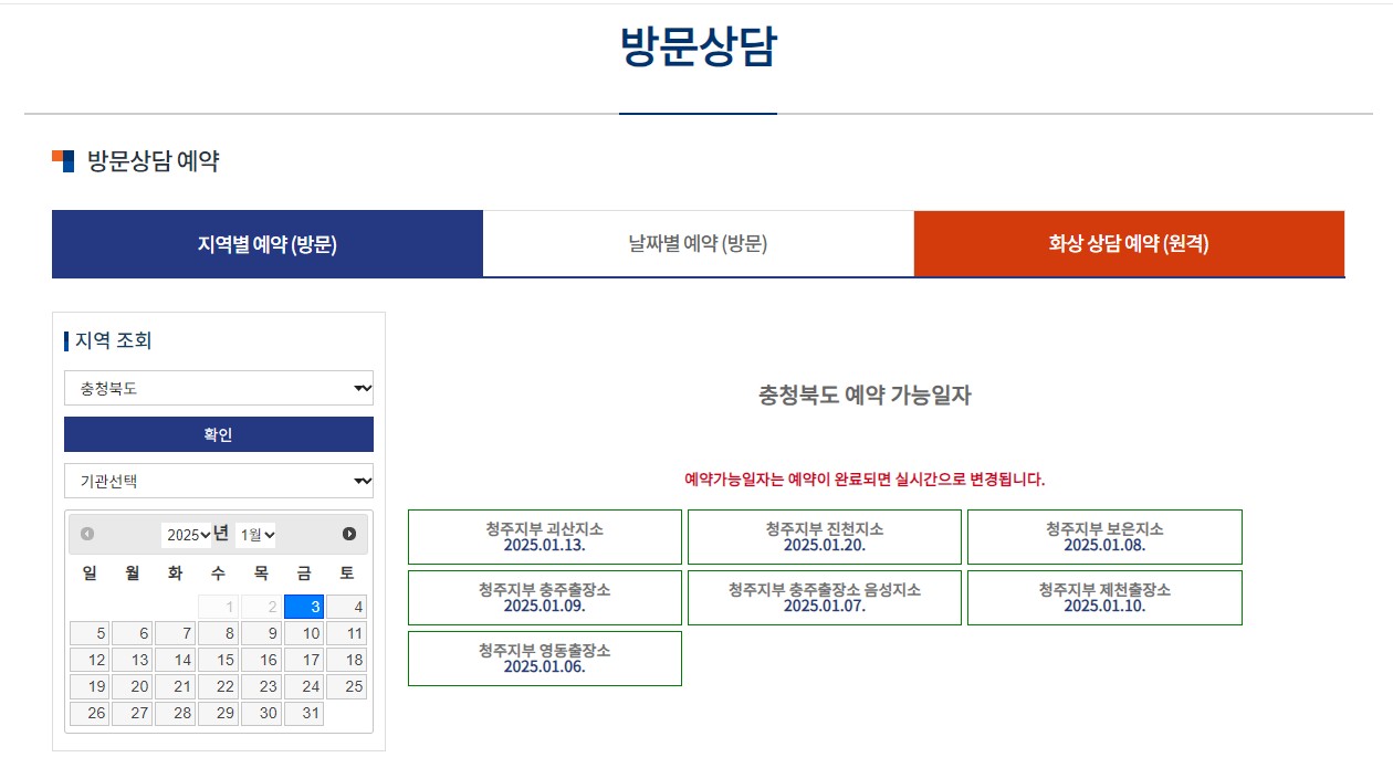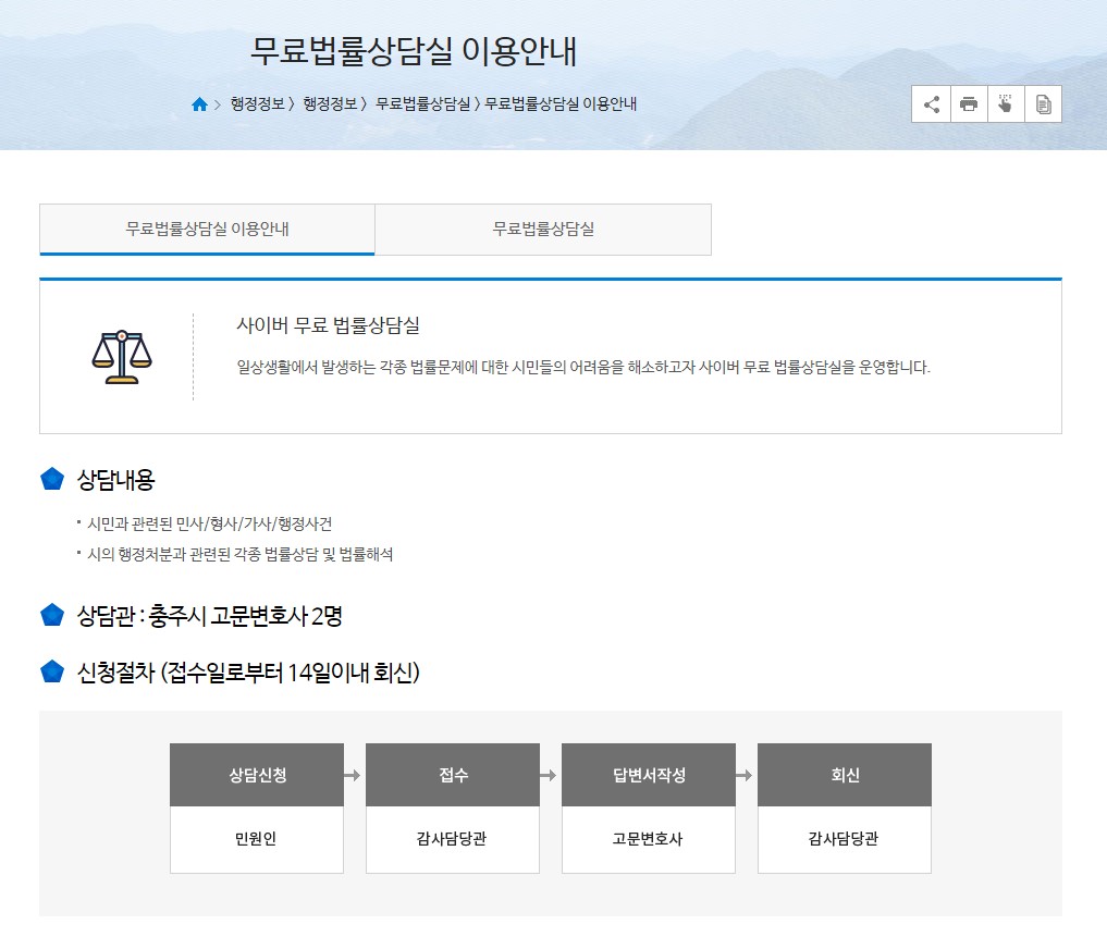 • 상담장소: 대한법률구조공단 충주출장소 (충북 충주시 충인1길 16 충주시근로자종합복지관 2층)