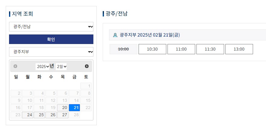 위와 같은 페이지가 나오면, 지역조회에서 '광주/전남'을 확인해주세요. '광주지부'도 확인해주세요.