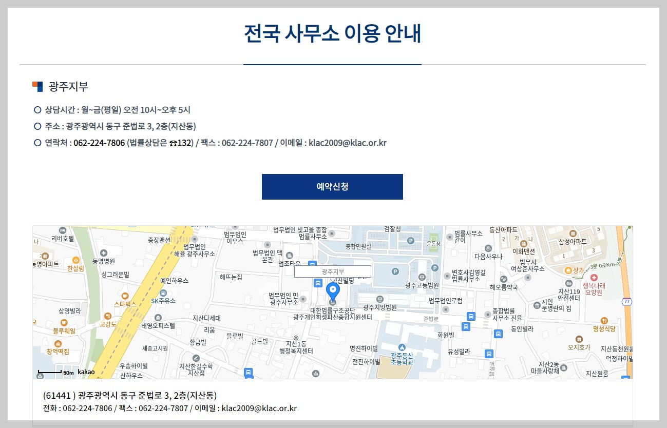 - 상담장소: 대한법률구조공단 광주지부 (광주광역시 동구 준법로3, 2층)