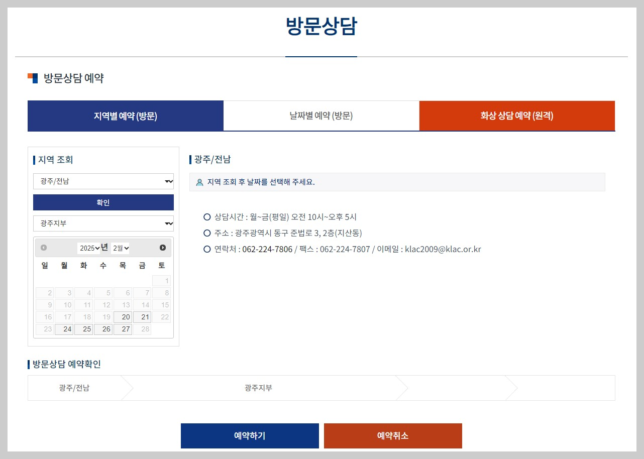 광주 법률구조공단에서 무료상담을 받기 위해서는 사전예약이 필수입니다.