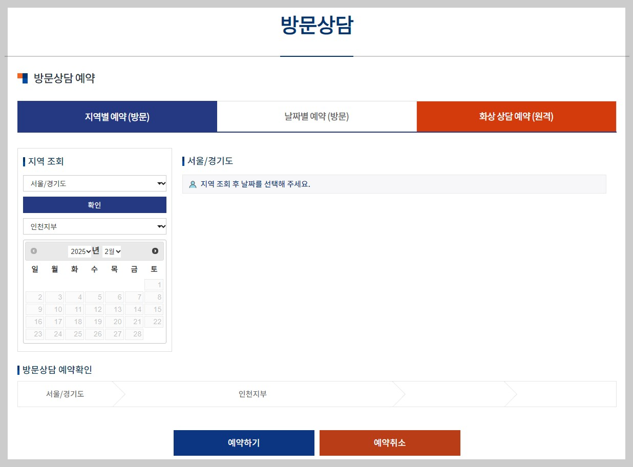 • 신청방법: 방문상담의 경우, 사전예약 필수! (홈페이지 예약 또는 전화, 챗봇 예약)