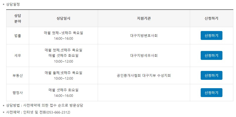 - 상담장소: 대구법원 신관 지하 1층 사법접근지원센터