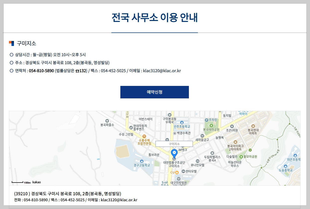 - 상담장소: 대한법률구조공단 구미지소 (구미시 봉곡로 108 2층)