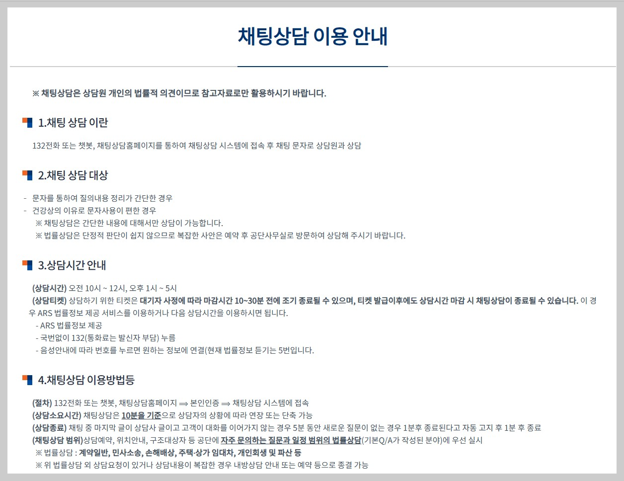 - 이용방법: 대한법률구조공단 사이버상담 게시판에 상담글 남기고, 답변 받기