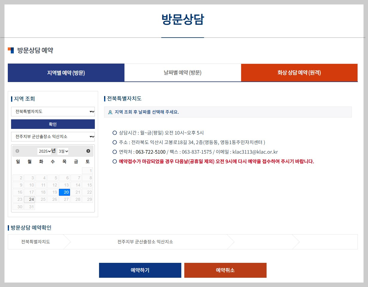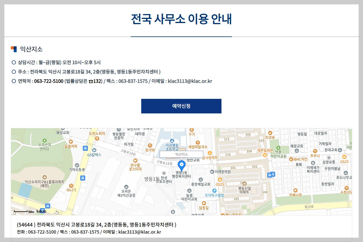 - 상담장소: 대한법률구조공단 익산지소(익산시 고봉로18길 34, 2층)