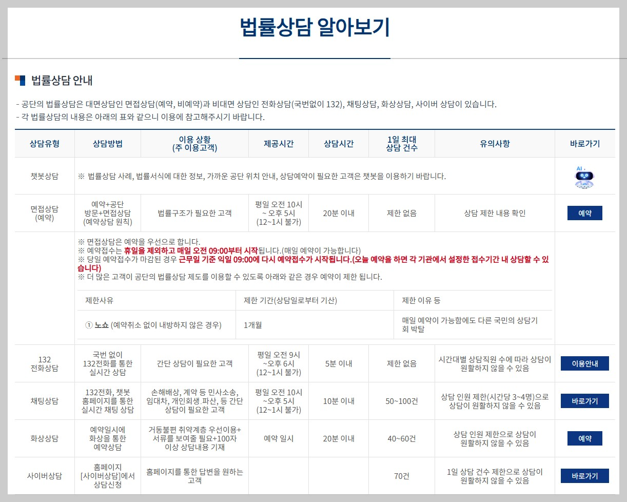 - 상담대상: 간단한 생활법률상담이 필요한 경우