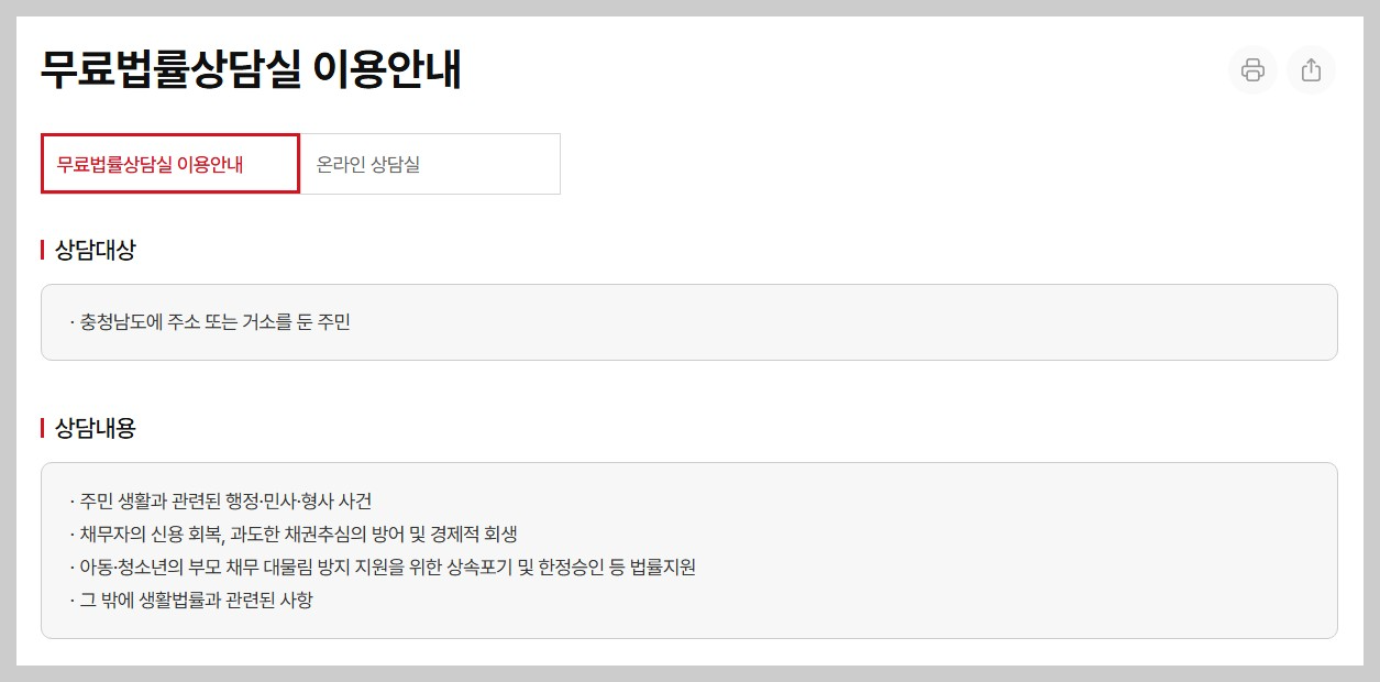 - 상담대상: 충청남도에 주소 또는 거소를 둔 주민