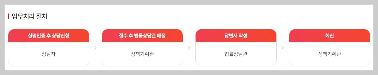 - 신청방법: 온라인 무료법률상담실 게시판 이용하기