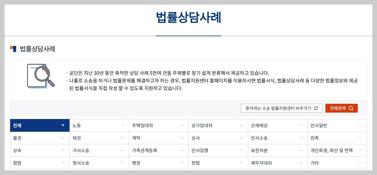 - 신청방법: 대한법률구조공단 홈페이지 내 사이버상담 게시판에서 신청하기